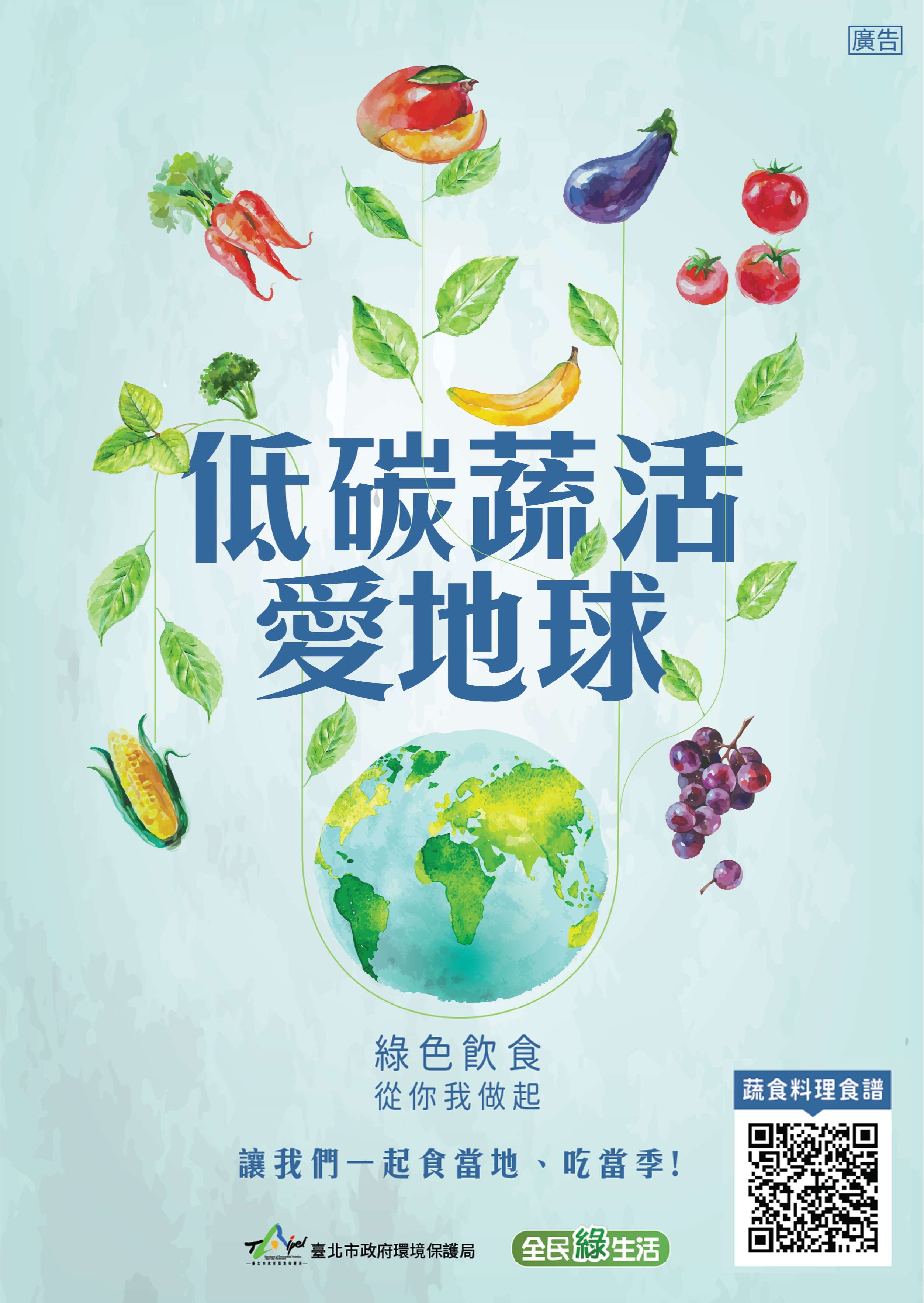 二、旨揭低碳蔬活愛地球海報,含有1週蔬食食譜之QR Code, 可提供同仁下載使用。