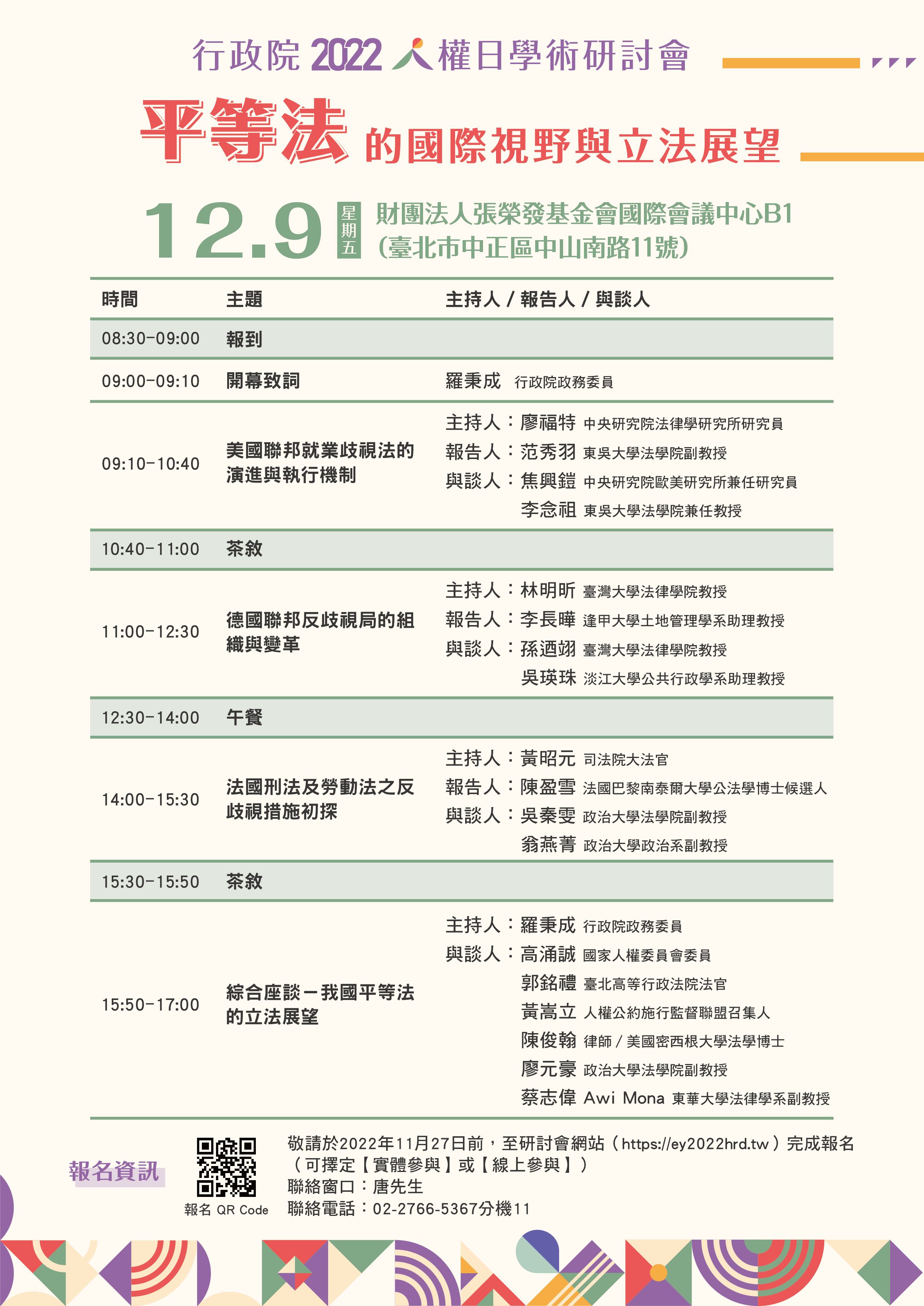 學術研討會實體會議訂於111年12月9日上午9時至下午 5時於張榮發基金會國際會議中心B1舉辦,名額有限,報名額滿為 止。