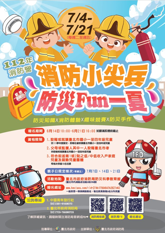 * 活動報名期間為112年6月14日10時至6月21日16時(如 額滿即提前截止),相關報名資訊請至本局網站 https://www.119.gov.taipei/