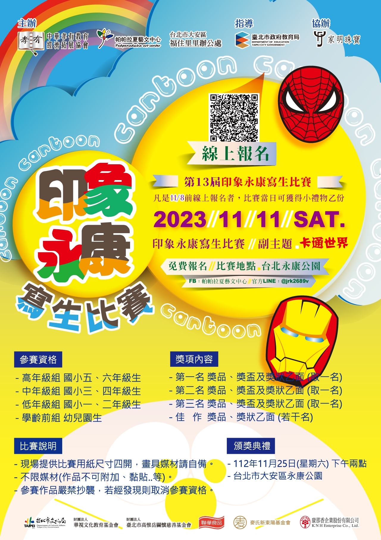 ※現場寫生組比賽地點:台北市大安區東門永康公園報到(近捷運東門站 5 號出口)