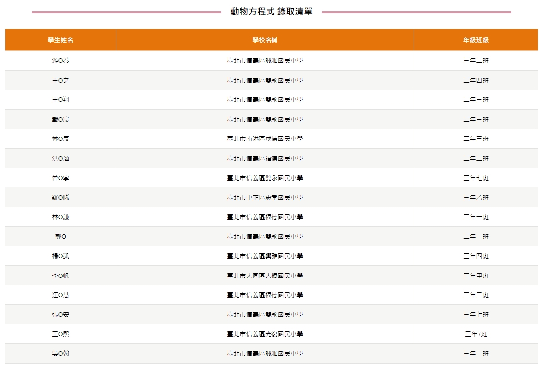 錄取名冊擷取自雙語辦公室之雙語夏令營公告: https://ecamp.tp.edu.tw/bilingual/information.php?p_id=33
