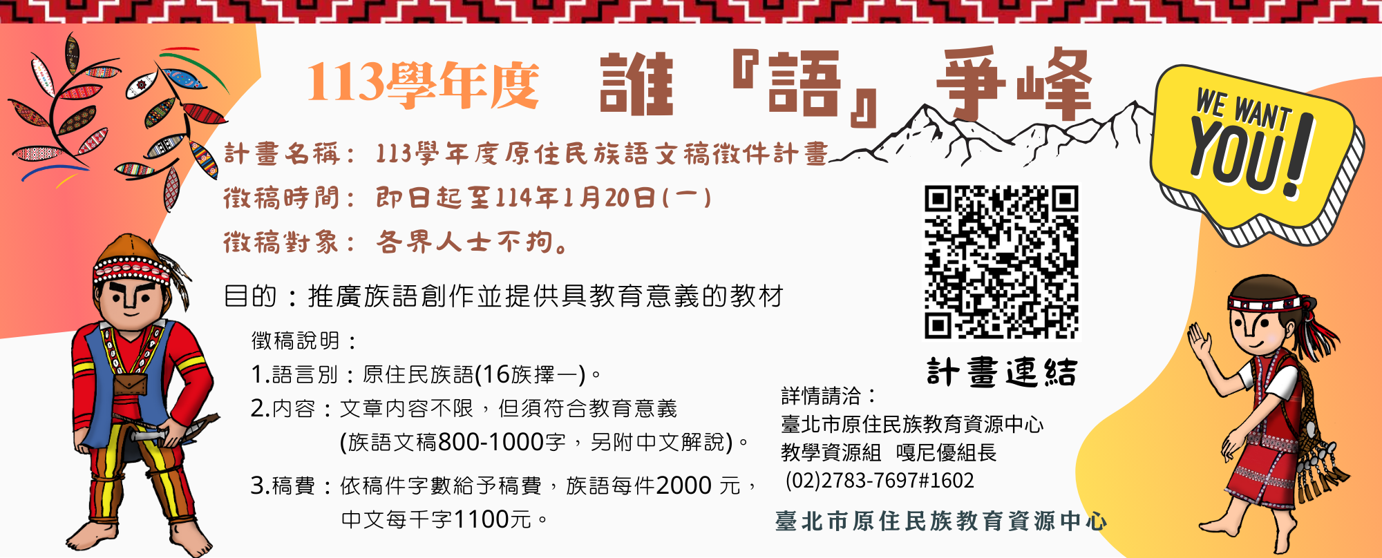 一、依據113學年度臺北市原住民族教育資源中心計畫辦理。