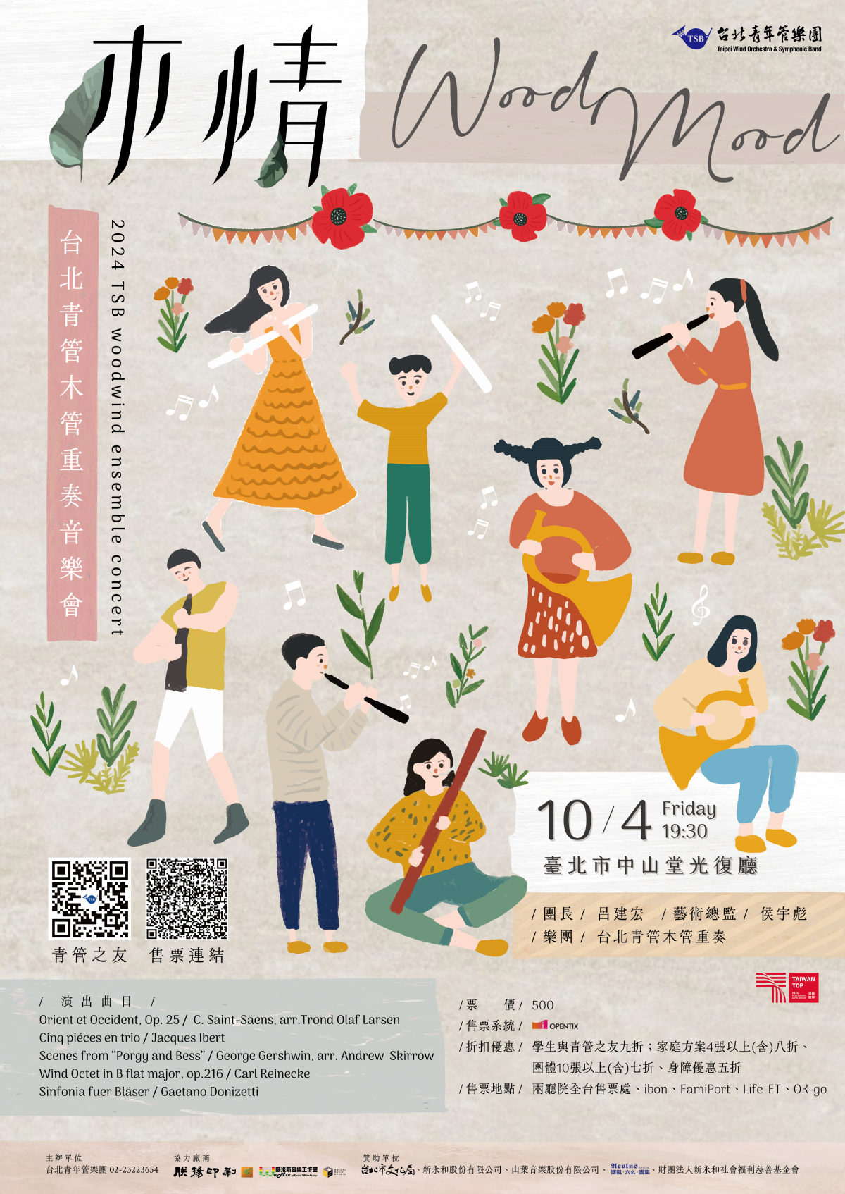 (三)購票與折扣優惠查詢請至兩廳院購票系統(http://reurl.cc/0da4jl);相關問題請逕洽台北青管樂團經理王先生(02-2322-3654)