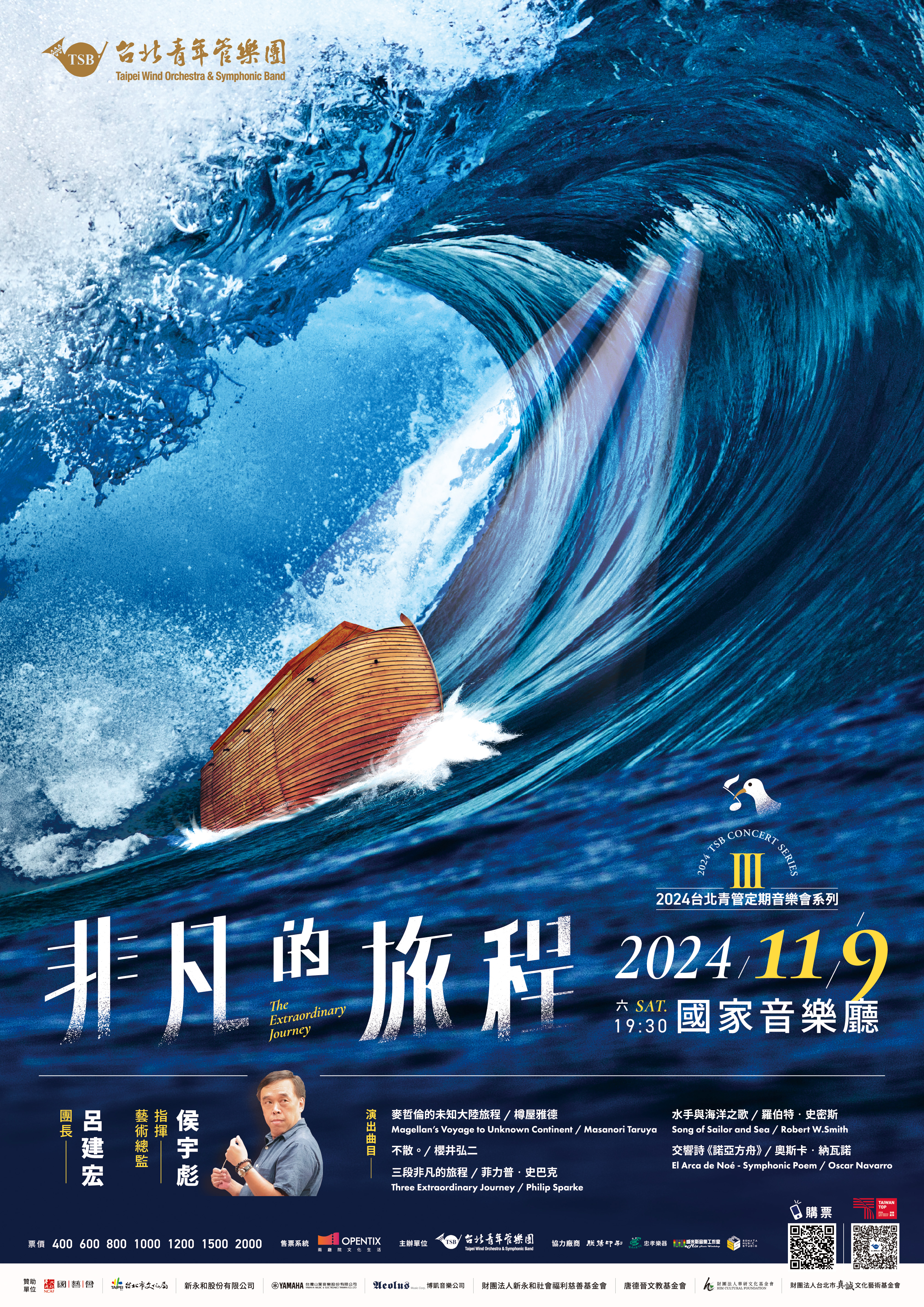 (三)購票與折扣優惠查詢請至OPENTIX售票系統(http://reurl.cc/myQp8M);相關問題請逕洽台北青管樂團經理王先生(02-23223654)。