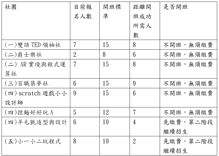 ★課外社團將於開學第二週2/17開始上課。