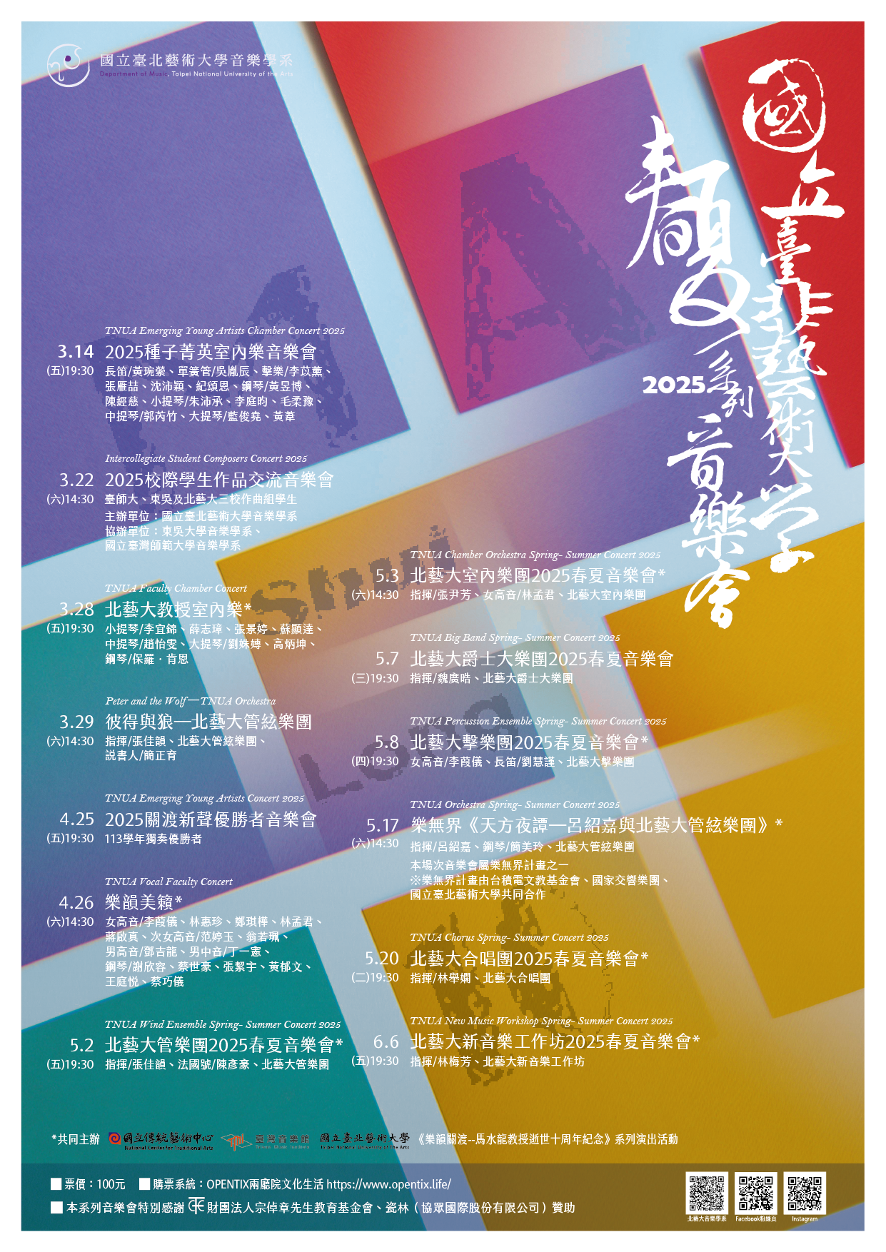 相關活動訊息請至北藝大音樂學系網站(https://music.tnua.edu.tw) 查詢。