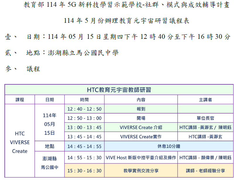 (二)課程:HTC教育元宇宙平台,詳如議程表。