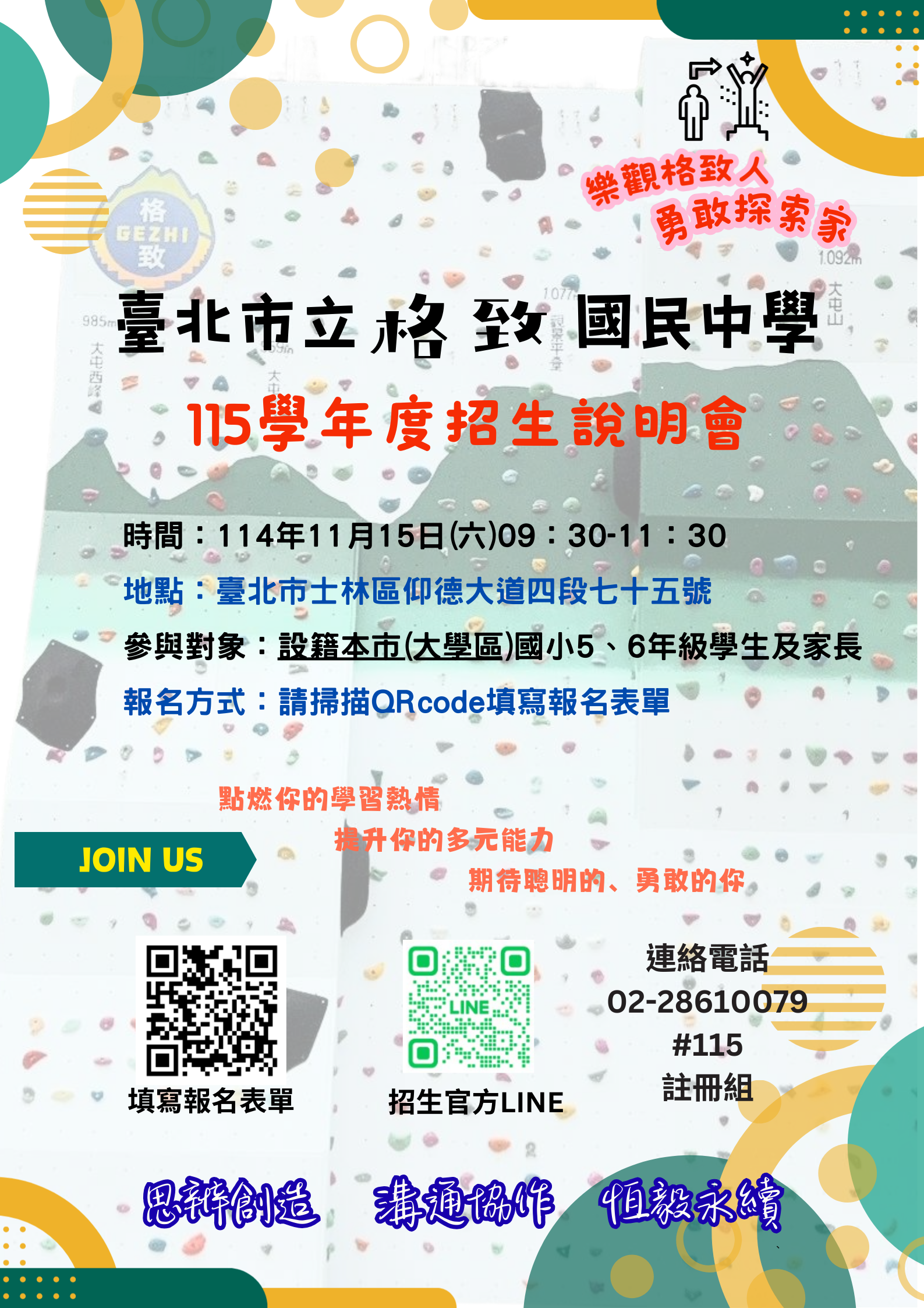報名方式:敬請有意參加招生說明會之學生及家長,於 114年11月9日(星期日)前登錄Google表單 (https://forms.gle/NhKUo9U7vXuqhD9g9)完成報名。