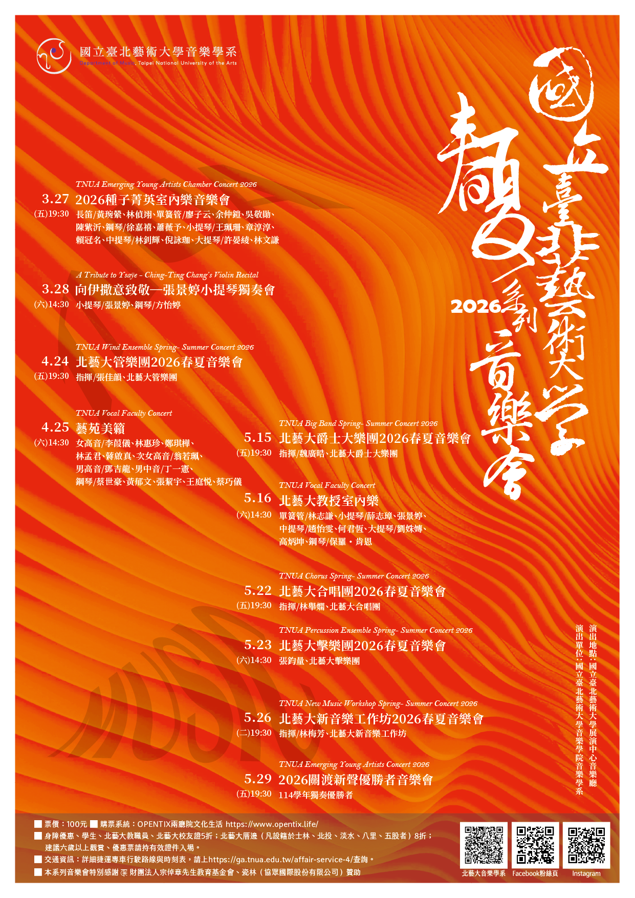 三、相關活動訊息請至北藝大音樂學系網站(https://music.tnua.edu.tw) 查詢。